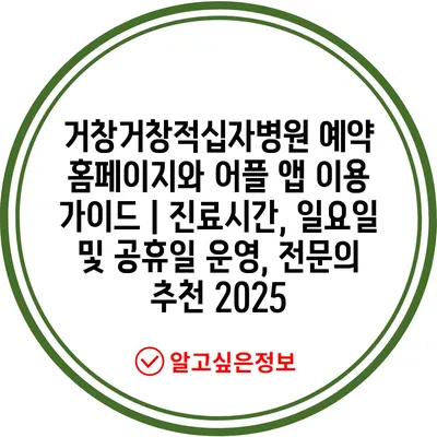 거창거창적십자병원 예약 홈페이지와 어플 앱 이용 설명서 | 진료시간, 일요일 및 공휴일 운영, 전연락 추천 2025 에 대해 자주 묻는 질문 TOP 5