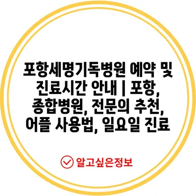 ✅ 포항세명기독병원의 예약 방법과 진료 시간을 지금 확인해 보세요.