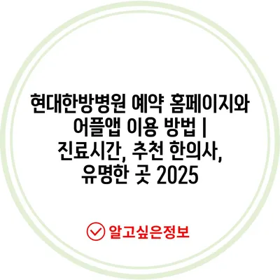 현대한방병원 예약 홈페이지와 어플앱 이용 방법 | 진료시간, 추천 한의사, 유명한 곳 2025 에 대해 자주 묻는 질문 TOP 5