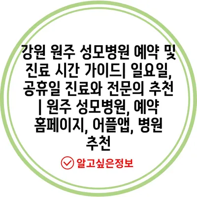 강원 원주 성모병원 예약 및 진료 시간 가이드| 일요일, 공휴일 진료와 전문의 추천 | 원주 성모병원, 예약 홈페이지, 어플앱, 병원 추천