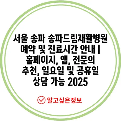 서울 송파 송파드림재활병원 예약 및 진료시간 공지 | 홈페이지, 앱, 전연락 추천, 일요일 및 공휴일 상담 가능 2025 에 대해 자주 묻는 질문 TOP 5