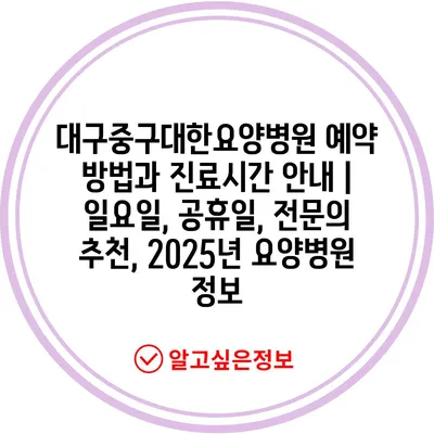 대구중구대한요양병원 예약 방법과 진료시간 공지 | 일요일, 공휴일, 전연락 추천, 2025년 요양병원 정보 에 대해 자주 묻는 질문 TOP 5