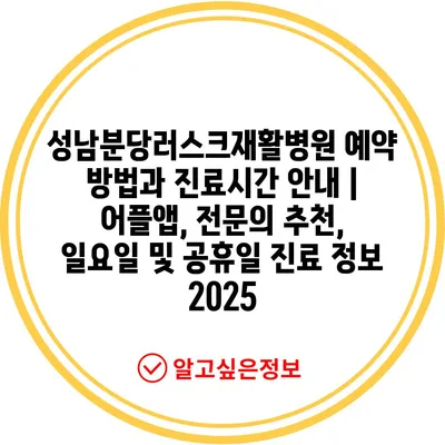 성남분당러스크재활병원 예약 방법과 진료시간 안내 | 어플앱, 전문의 추천, 일요일 및 공휴일 진료 정보 2025