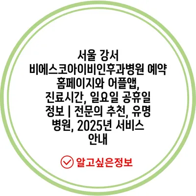 ✅ 서울 강서 비에스코아이비인후과병원의 진료시간과 예약 방법을 알아보세요.
