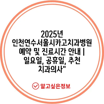 2025년 인천연수서울시카고치과병원 예약 및 진료시간 공지 | 일요일, 공휴일, 추천 치과의사