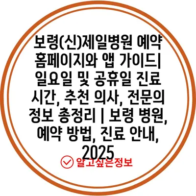 보령(신)제일병원 예약 홈페이지와 앱 가이드| 일요일 및 공휴일 진료 시간, 추천 의사, 전문의 정보 총정리 | 보령 병원, 예약 방법, 진료 안내, 2025