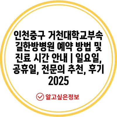 인천중구 거천대학교부속 길한방병원 예약 방법 및 진료 시간 공지 | 일요일, 공휴일, 전연락 추천, 후기 2025 에 대해 자주 묻는 질문 TOP 5