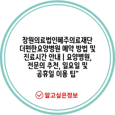 창원의료법인혜주의료재단 더편한요양병원 예약 방법 및 진료시간 공지 | 요양병원, 전연락 추천, 일요일 및 공휴일 이용 팁
