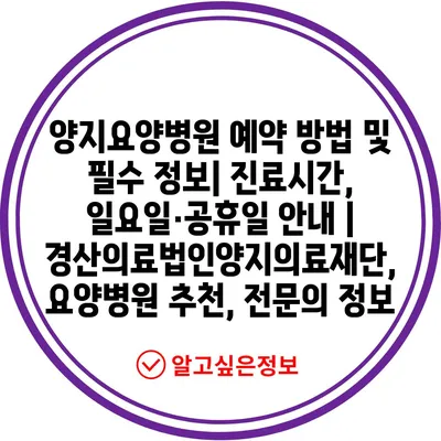 양지요양병원의 예약 방법과 진료 시간을 지금 바로 알아보세요.