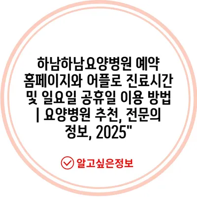 하남하남요양병원 예약 홈페이지와 어플로 진료시간 및 일요일 공휴일 이용 방법 | 요양병원 추천, 전연락 정보, 2025″ 에 대해 자주 묻는 질문 TOP 5