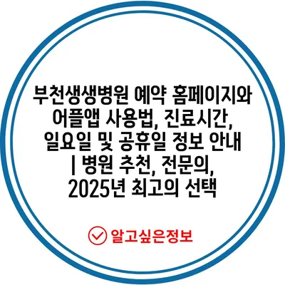 부천생생병원 예약 홈페이지와 어플앱 사용법, 진료시간, 일요일 및 공휴일 정보 공지 | 병원 추천, 전연락, 2025년 최고의 선택 에 대해 자주 묻는 질문 TOP 5