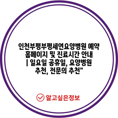✅ 인천부평세연요양병원의 예약 방법과 진료시간을 자세히 알아보세요.