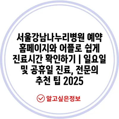 서울강남나누리병원 예약 홈페이지와 어플로 쉽게 진료시간을 확인하기 | 일요일 및 공휴일 진료, 전연락 추천 팁 2025
