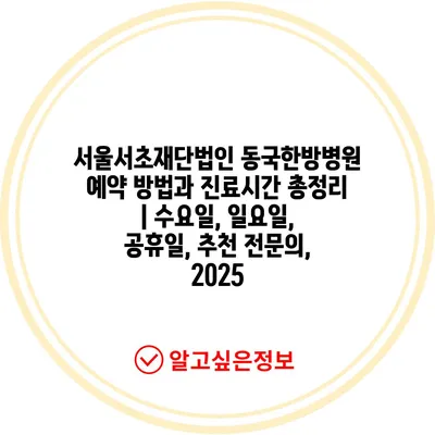 서울서초재단법인 동국한방병원 예약 방법과 진료시간 총정리 | 수요일, 일요일, 공휴일, 추천 전연락, 2025 에 대해 자주 묻는 질문 TOP 5