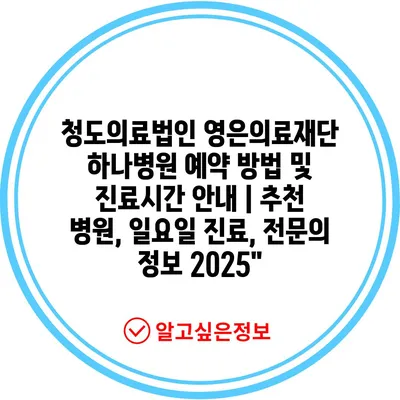 청도의료법인 영은의료재단 하나병원 예약 방법 및 진료시간 안내 | 추천 병원, 일요일 진료, 전문의 정보 2025″
