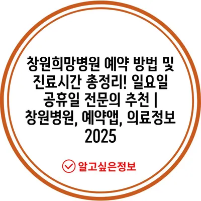 창원희망병원 예약 방법 및 진료시간 총정리! 일요일 공휴일 전연락 추천 | 창원병원, 예약앱, 의료정보 2025 에 대해 자주 묻는 질문 TOP 5