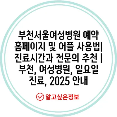 부천서울여성병원 예약 홈페이지 및 어플 사용법| 진료시간과 전연락 추천 | 부천, 여성병원, 일요일 진료, 2025 공지 에 대해 자주 묻는 질문 TOP 5