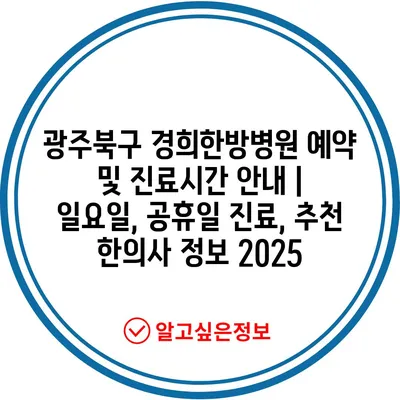 광주북구 경희한방병원 예약 및 진료시간 공지 | 일요일, 공휴일 진료, 추천 한의사 정보 2025 에 대해 자주 묻는 질문 TOP 5