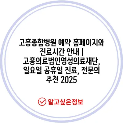 고흥종합병원 예약 홈페이지와 진료시간 안내 | 고흥의료법인영성의료재단, 일요일 공휴일 진료, 전문의 추천 2025