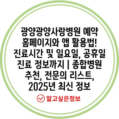 광양광양사랑병원 예약 홈페이지와 앱 활용법! 진료시간 및 일요일, 공휴일 진료 정보까지 | 종합병원 추천, 전연락 리스트, 2025년 최신 정보 에 대해 자주 묻는 질문 TOP 5