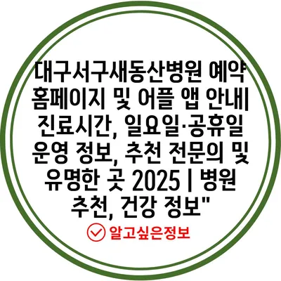 ✅ 대구서구새동산병원의 진료시간과 예약 절차를 알아보세요.