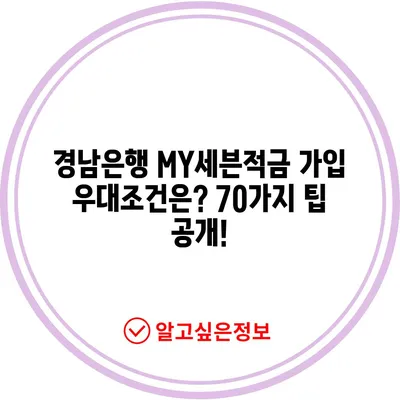 경남은행 MY세븐적금 가입 우대조건은? 70가지 팁 공개!