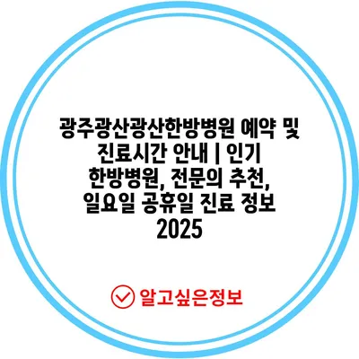 광주광산광산한방병원 예약 및 진료시간 공지 | 인기 한방병원, 전연락 추천, 일요일 공휴일 진료 정보 2025 에 대해 자주 묻는 질문 TOP 5