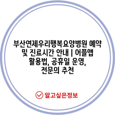 부산연제우리행복요양병원 예약 및 진료시간 공지 | 어플앱 활용법, 공휴일 운영, 전연락 추천 에 대해 자주 묻는 질문 TOP 5