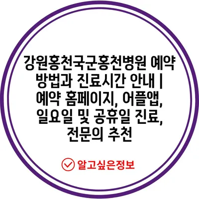 강원홍천국군홍천병원의 진료 시간과 예약 방법을 지금 바로 알아보세요!