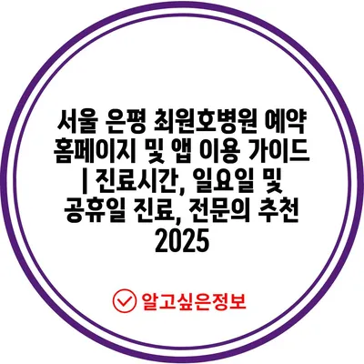 서울 은평 최원호병원 예약 홈페이지 및 앱 이용 설명서 | 진료시간, 일요일 및 공휴일 진료, 전연락 추천 2025에 대한 내용을 제공하겠습니다.