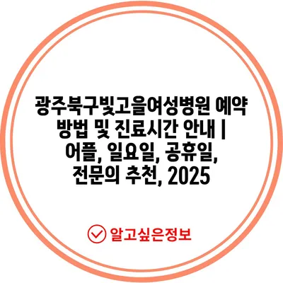 광주북구빛고을여성병원 예약 방법 및 진료시간 공지 | 어플, 일요일, 공휴일, 전연락 추천, 2025 에 대해 자주 묻는 질문 TOP 5