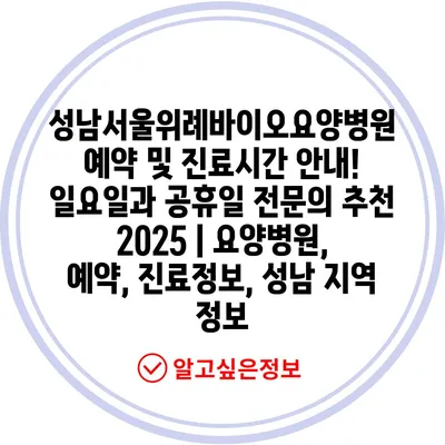성남서울위례바이오요양병원 예약 및 진료시간 공지! 일요일과 공휴일 전연락 추천 2025 | 요양병원, 예약, 진료정보, 성남 지역 정보 에 대해 자주 묻는 질문 TOP 5