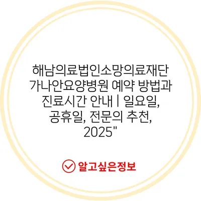 해남의료법인소망의료재단 가나안요양병원 예약 방법과 진료시간 공지 | 일요일, 공휴일, 전연락 추천, 2025″ 에 대해 자주 묻는 질문 TOP 5