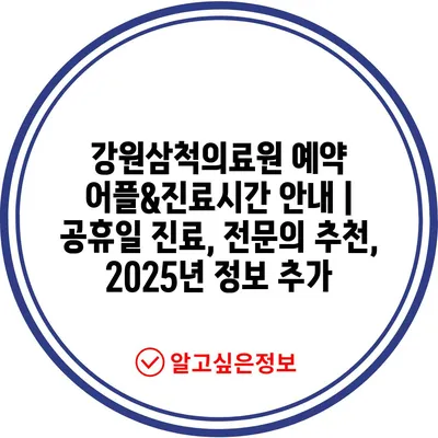 강원삼척의료원 예약 어플&진료시간 공지 | 공휴일 진료, 전연락 추천, 2025년 정보 추가 에 대해 자주 묻는 질문 TOP 5