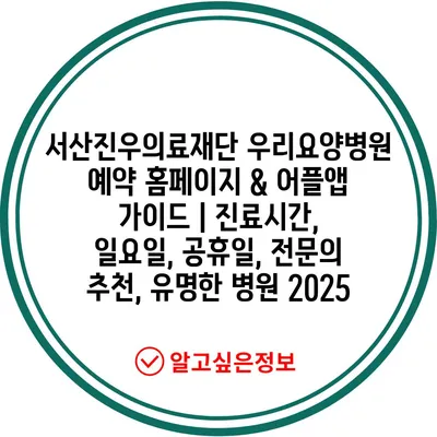 ✅ 서산진우의료재단 우리요양병원 예약 방법을 자세히 알아보세요.