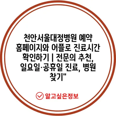 천안서울대정병원 예약 홈페이지와 어플로 진료시간 확인하기 | 전연락 추천, 일요일·공휴일 진료, 병원 찾기에 대해 자주 묻는 질문 TOP 5