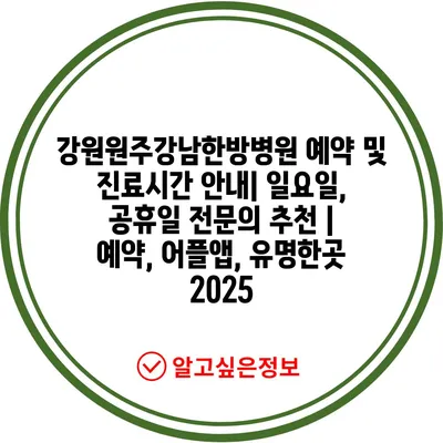 강원원주강남한방병원 예약 및 진료시간 공지| 일요일, 공휴일 전연락 추천 | 예약, 어플앱, 유명한곳 2025