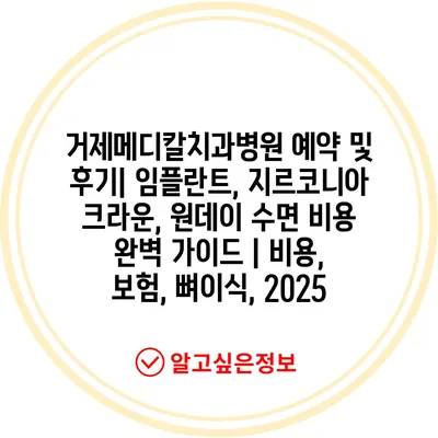 거제메디칼치과병원 예약 및 후기| 임플란트, 지르코니아 크라운, 원데이 수면 비용 완벽 설명서 | 비용, 보험, 뼈이식, 2025