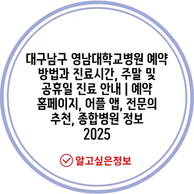 ✅ 대구남구 영남대학교병원 예약 방법과 진료시간을 알아보세요!