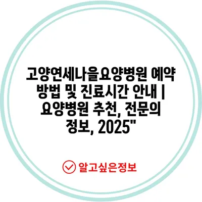고양연세나을요양병원 예약 방법 및 진료시간 안내 | 요양병원 추천, 전문의 정보, 2025″