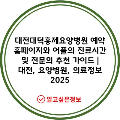 대전대덕홍제요양병원 예약 홈페이지와 어플의 진료시간 및 전문의 추천 가이드 | 대전, 요양병원, 의료정보 2025