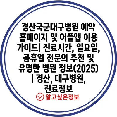 경산국군대구병원 예약 홈페이지 및 어플앱 이용 설명서| 진료시간, 일요일, 공휴일 전연락 추천 및 유명한 병원 정보(2025) | 경산, 대구병원, 진료정보