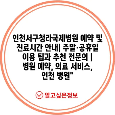 인천서구청라국제병원 예약 및 진료시간 안내| 주말·공휴일 이용 팁과 추천 전문의 | 병원 예약, 의료 서비스, 인천 병원”