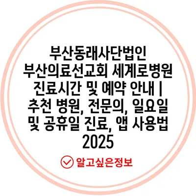 부산동래사단법인 부산의료선교회 세계로병원 진료시간 및 예약 공지 | 추천 병원, 전연락, 일요일 및 공휴일 진료, 앱 사용법 2025 에 대해 자주 묻는 질문 TOP 5