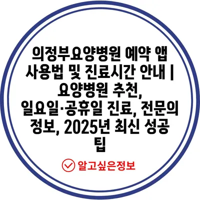 의정부요양병원 예약 앱 사용법 및 진료시간 공지 | 요양병원 추천, 일요일·공휴일 진료, 전연락 정보, 2025년 최신 성공 팁