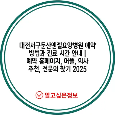대전서구둔산엔젤요양병원 예약 방법과 진료 시간 공지 | 예약 홈페이지, 어플, 의사 추천, 전연락 찾기 2025 에 대해 자주 묻는 질문 TOP 5
