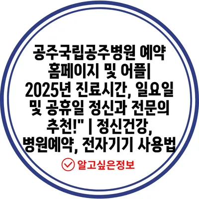 공주국립공주병원 예약 홈페이지 및 어플| 2025년 진료시간, 일요일 및 공휴일 정신과 전연락 추천!” | 정신건강, 병원예약, 전자기기 사용법 에 대해 자주 묻는 질문 TOP 5