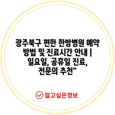 광주북구 편한 한방병원 예약 방법 및 진료시간 안내 | 일요일, 공휴일 진료, 전문의 추천”