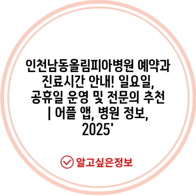 인천남동올림피아병원 예약과 진료시간 공지! 일요일, 공휴일 운영 및 전연락 추천 | 어플 앱, 병원 정보, 2025’에 대해 자주 묻는 질문 TOP 5