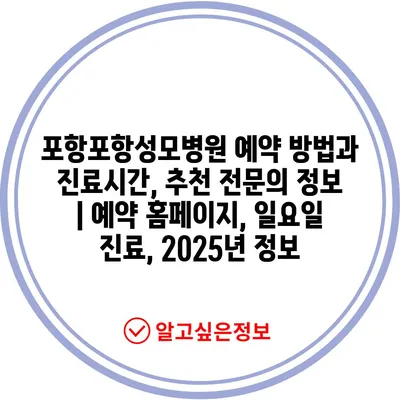 포항포항성모병원 예약 방법과 진료시간, 추천 전연락 정보 | 예약 홈페이지, 일요일 진료, 2025년 정보 에 대해 자주 묻는 질문 TOP 5